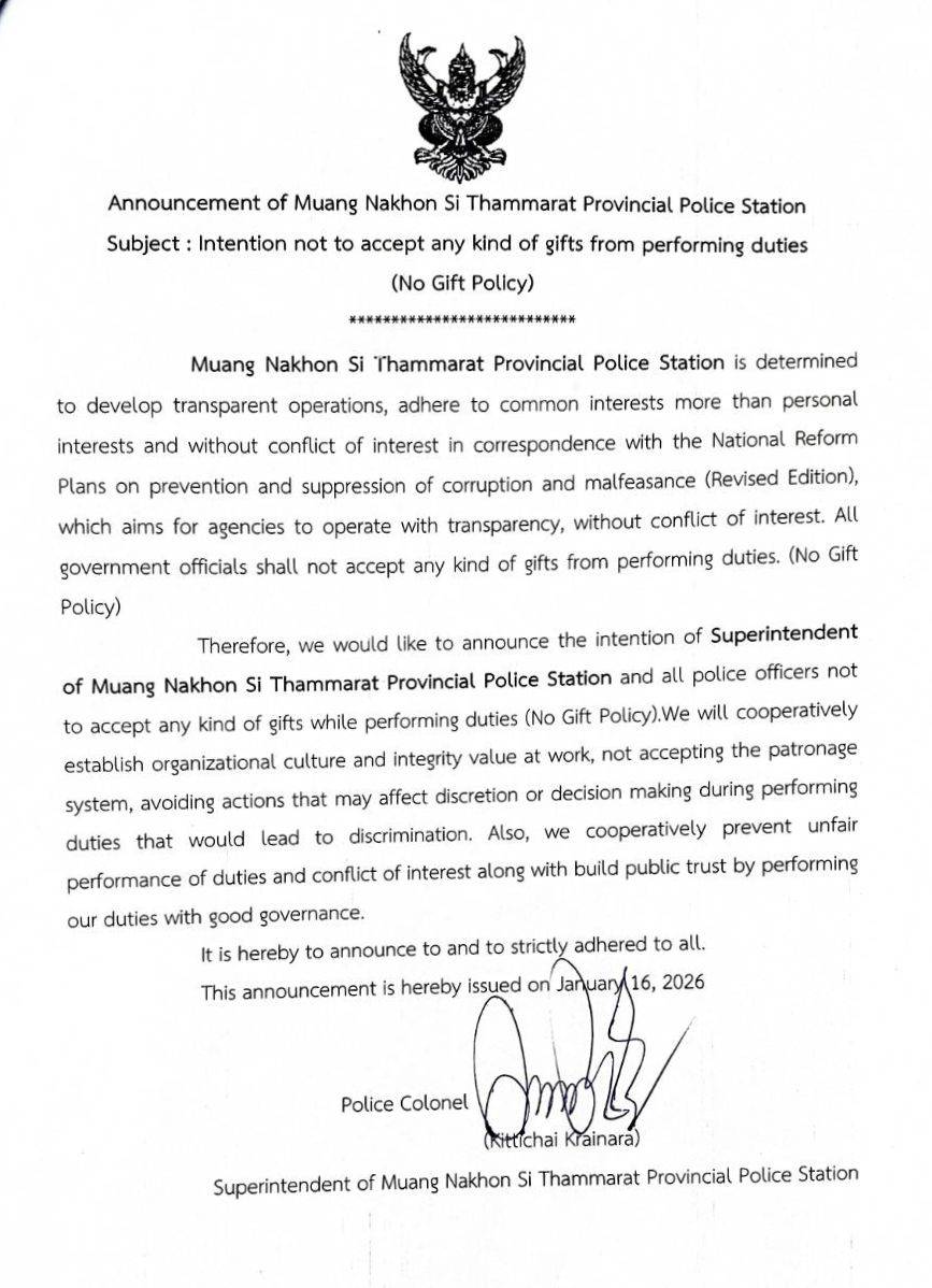 สถานีตำรวจภูธรเมืองนครศรีธรรมราช เมื่อวันที่ 6 มิถุนายน 2568 เวลา 14.30 น.พ.ต.อ.กิตติชัย ไกรนรา ผกก.