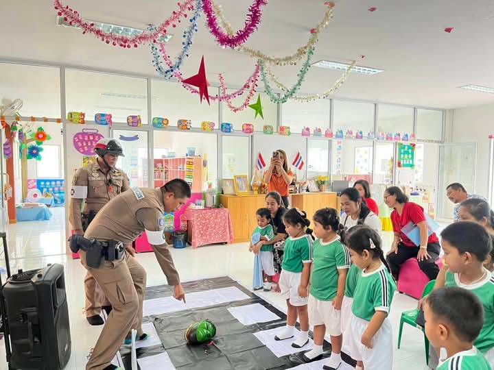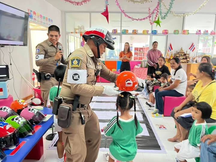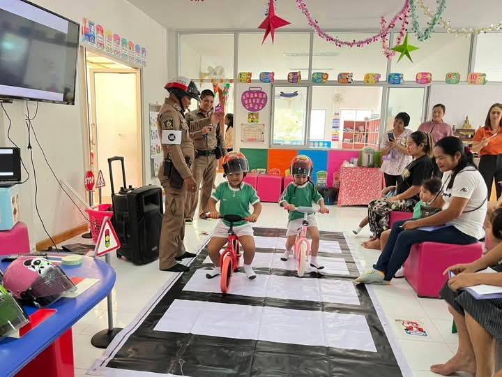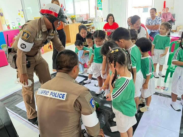 เรียนชั้นก่อนปฐมวัย และผู้ปกครอง ตั้งแต่เวลา 08.30-11.00 น. ปลูกฝังและเสริมสร้างวินัยการจราจรแก่