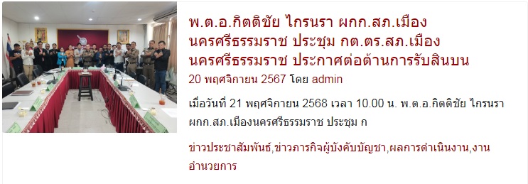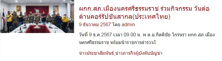 กิจกรรมการมีส่วนร่วม ของ หัวหน้าสถานีตำรวจ ในการต่อต้านการทุจริต/การรับสินบน ประจำปีงบประมาณ พ.ศ.2568 ได้ประชาสัมพันธ์ไว้ หน้าเวปไซต์หลัก https://muang.nakhonsithammarat.police.go.th